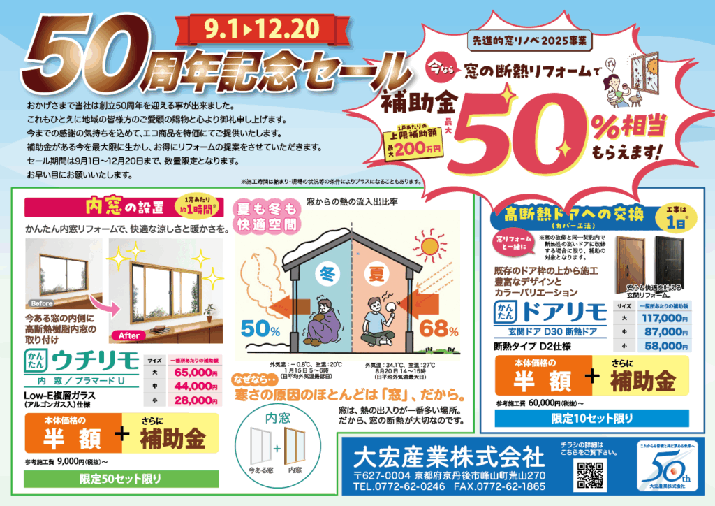 令和7年9月1日〜12月20日まで、50周年記念セールを開催します。